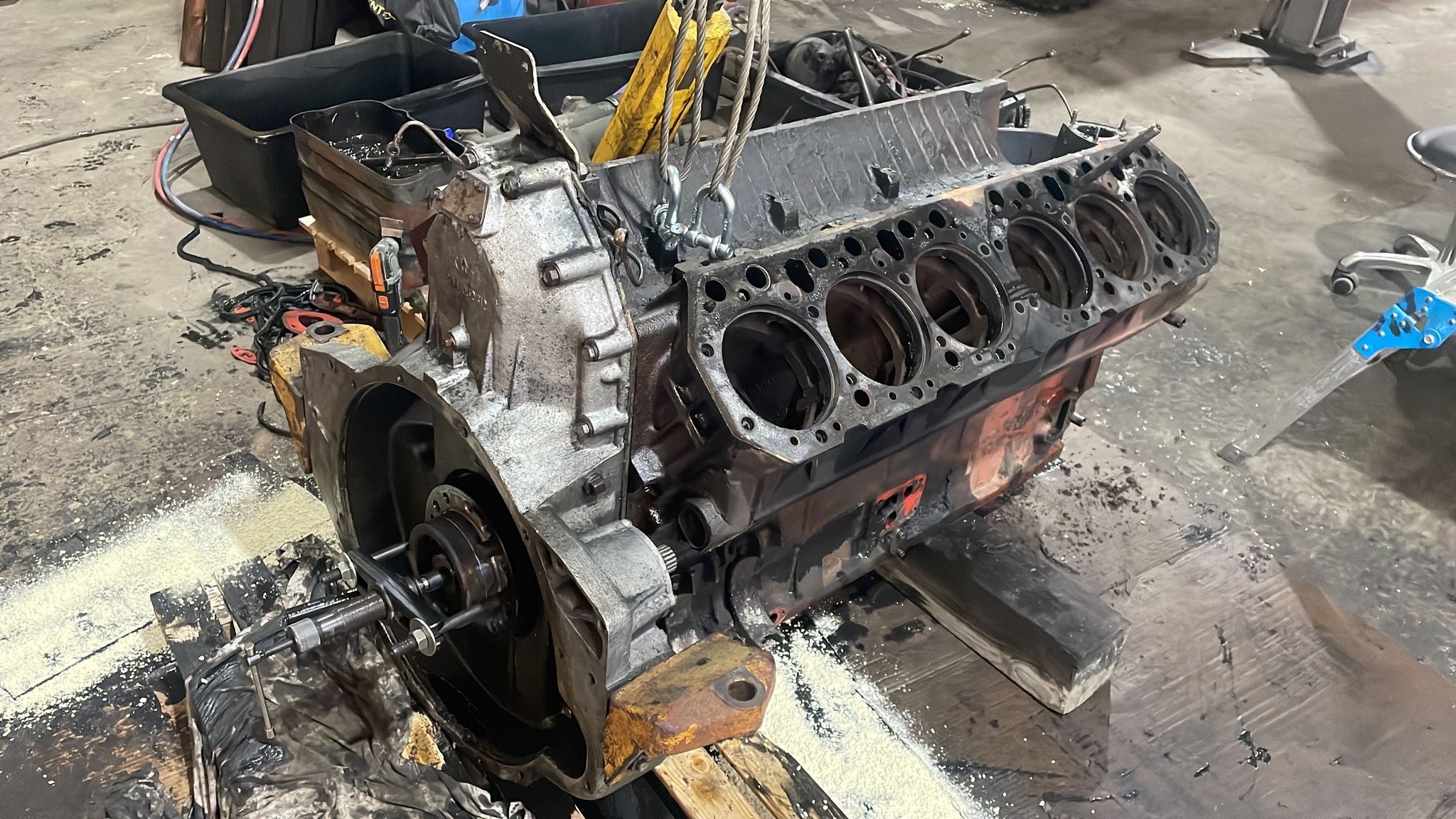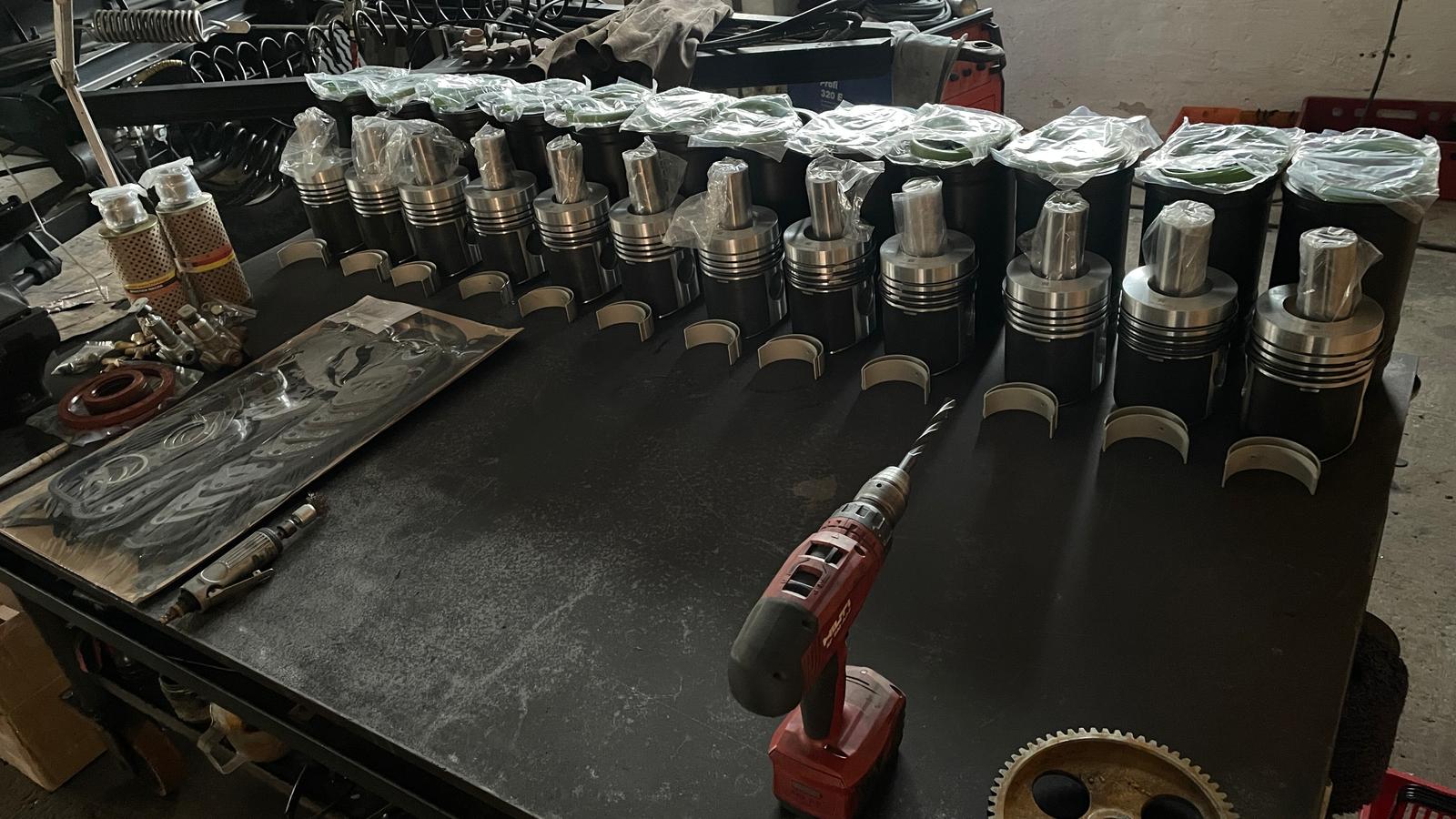 Zurück zu Hause ging es los... Den soeben gekauften Motor in alle Einzelteile zerlegen, sauber machen und mit den neuen Teilen bestücken. Er hat jetzt neue Kolbenschmidt Laufbuchsen und Kolben.